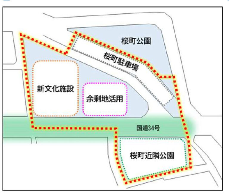 9月議会には、民間活力導入可能性調査のための予算(3,500万円)が提案されています。市庁舎跡地(新文化施設の整備と余剰地の活用)に加え、桜町駐車場、市庁舎別館跡に整備する桜町近隣公園を対象に官民連携(PPP/PFI手法)での事業実施の可能性を調査するための業務委託費です。