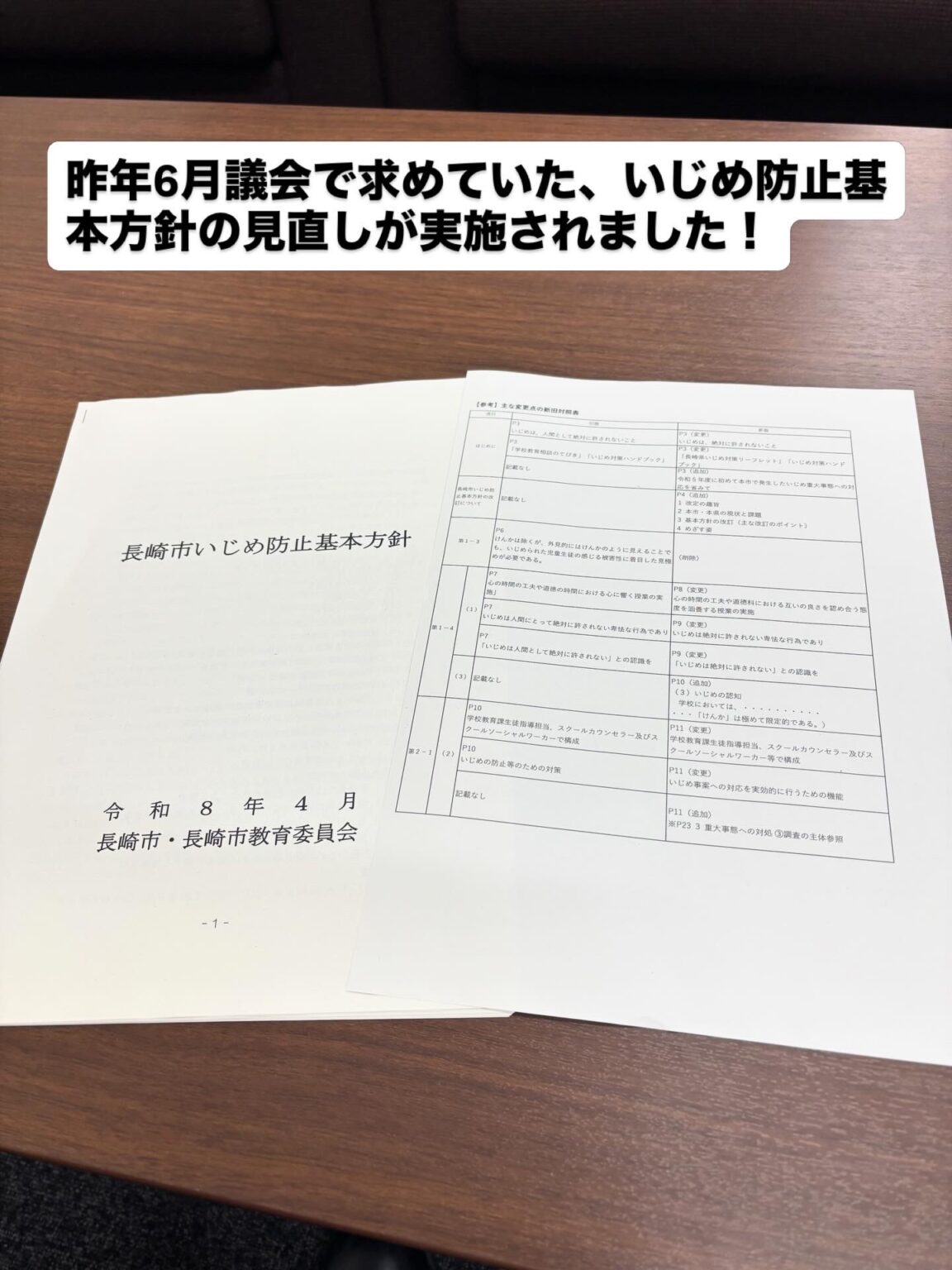 長崎市いじめ防止基本方針が4月、改定されました。先日、教育委員会の担当者から改定について説明を受けました。